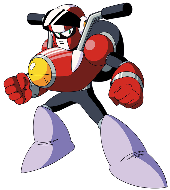 Turbo Man-First off, I’d argue that he deserves an Affinity to Electric. Unlike Spring Man, he actually does receive a boost in his abilities. He becomes faster by a REMARKABLE rate, making him a much tougher fighter. “he becomes an invincible electric car for a short time if charged with high voltage electricity”(MMKB). In this case, I’d say that Turbo deserves the Electric affinity more than old Spring-head. Second off, I do not agree with the reasoning behind the Flame typing. I might as well go back to 7, and bring up his attack patterns. We all remember the Scorch Wheel, right? Of course. How about the “Crash Drive”? No? Allow to enlighten you. It’s his car-transforming technique, where he’d rush you. Obviously, we need to fix the name[Both because it is terrible and Crash Man exists], but tell me what second-typing you could give this attack? Well, none. On the other hand, Scorch Wheel can easily be Flame and Swift, thus knocking out the T2. “Crash Drive”, on the other hand, isn’t so easy. Would it really make sense to give this a second-typing? I mean, he RUSHES you. Keyword rush, which is how I’d sum up most Swift-attacks. Don’t forget we already have quite a bit of Flame-cores coming up. I know you’re throwing Nitro in my face, but I’ll throw something back….